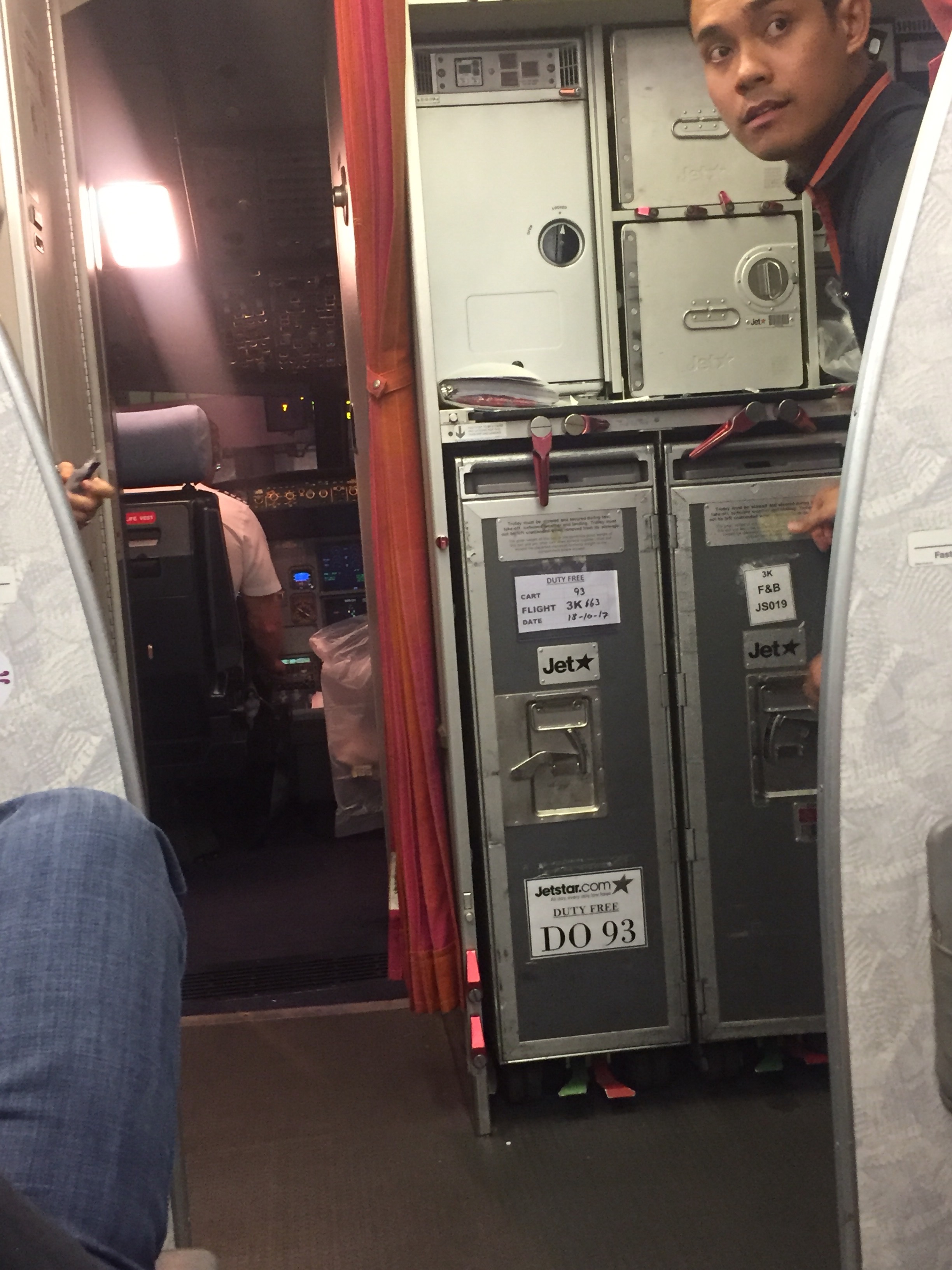I am sitting in seat 2C, an aisle seat in the second row, on this Jetstar Asia Airbus A320 flight to Bangkok. Upgraded at check-in to a ‘premium’ seat at the front, I hope the whole flight will have that ‘premium’ feel, but it doesn’t.