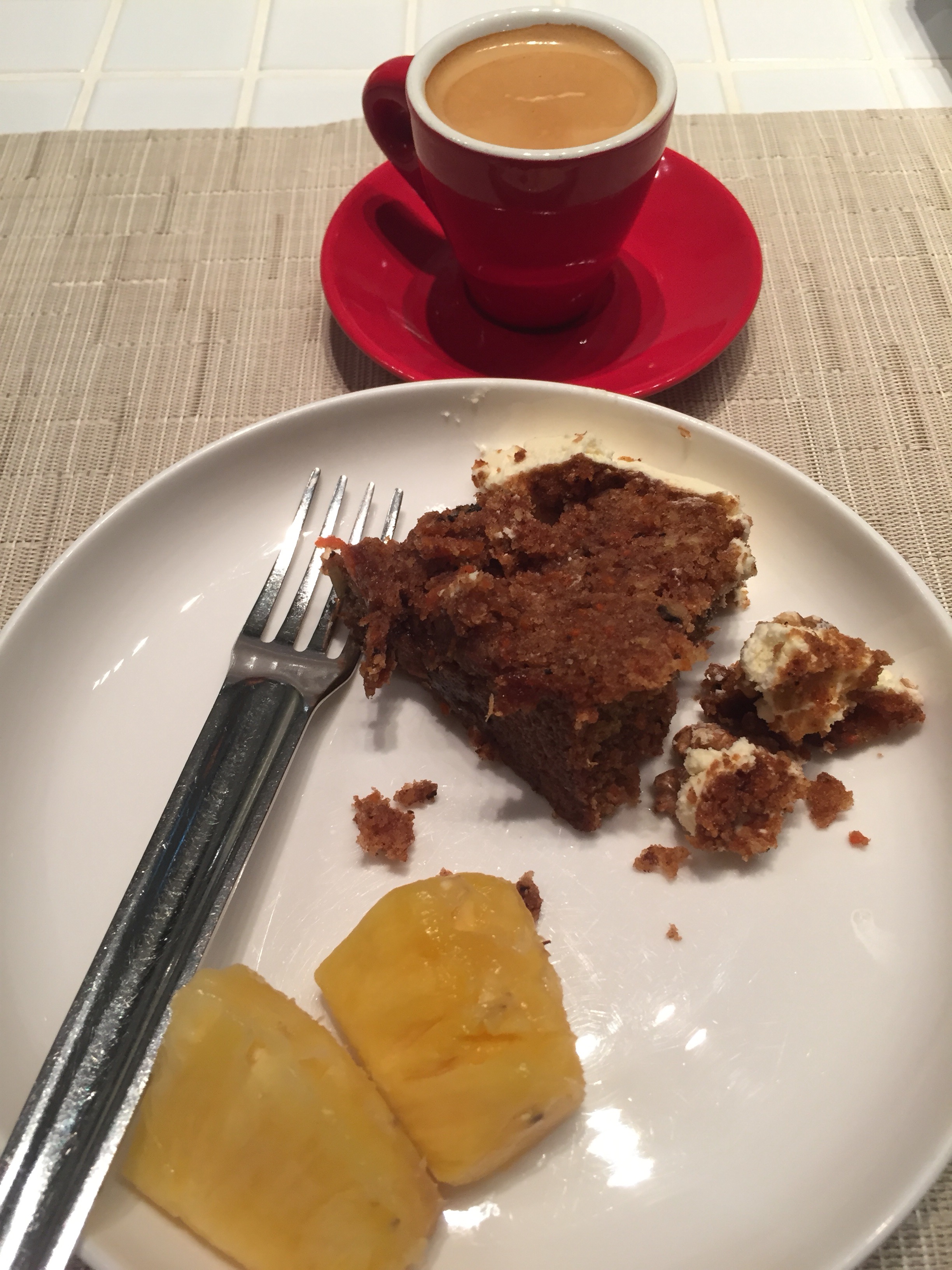 I finish with a selection of desserts. The Auntie suggests the ‘healthy’ carrot cake and I suggest nothing that looks like that is