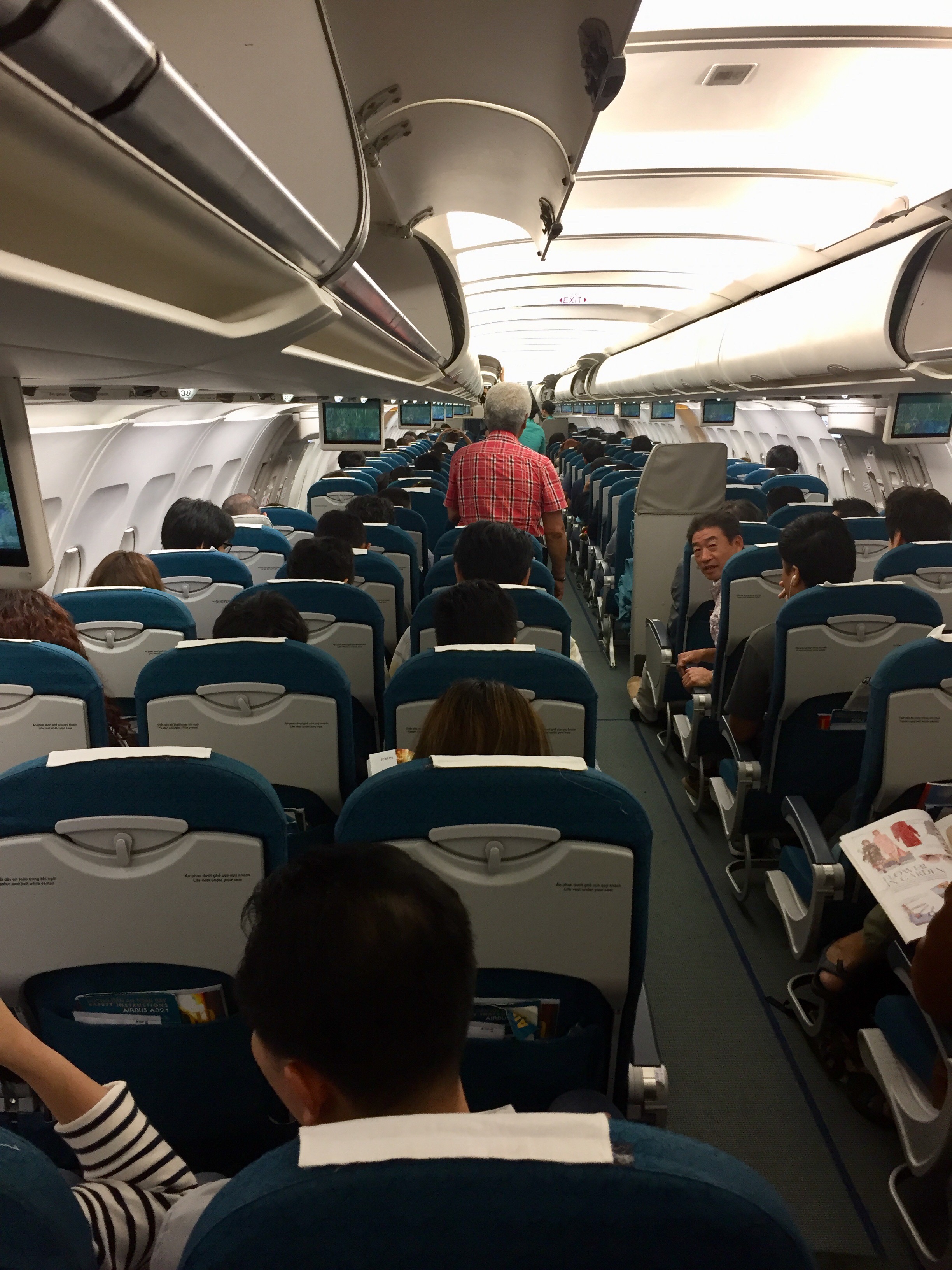 I am the last to board – and far back in seat 40C (!?) on this SkyTeam Vietnam Airlines Airbus A321 aircraft bound for Hanoi.