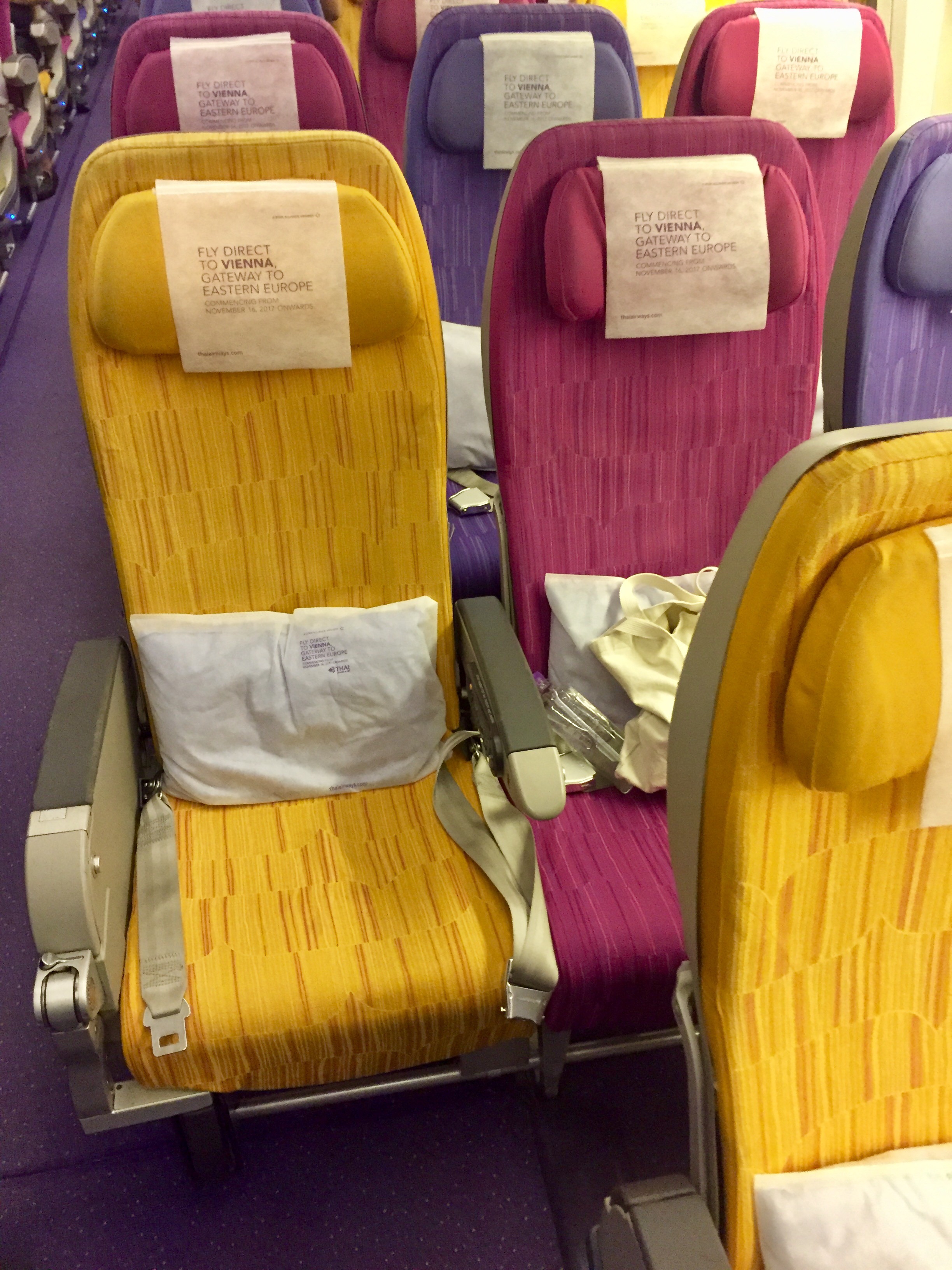 I am sitting in seat 32C, an aisle seat with no seat in front of me, on this Thai Airways Boeing 777-200 aircraft. It’s lucky I asked at the gate as this seat was blocked during online check-in. It’s probably the best seat in Economy so make sure you ask for it the next time you fly this plane.