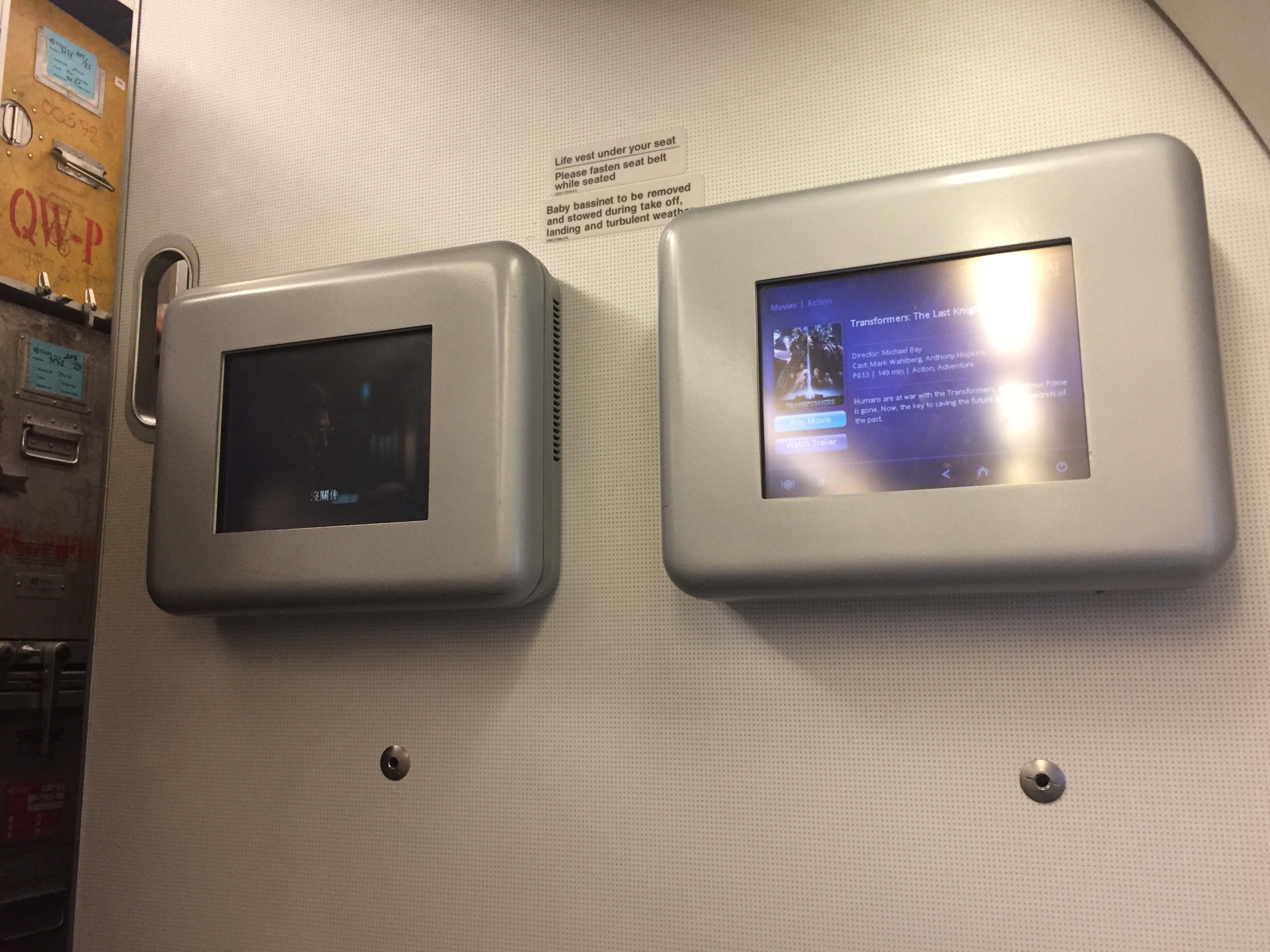 I watch a movie from the AV screen attached to the bulkhead wall but the glare from the cabin lights make it a bit difficult to watch clearly.