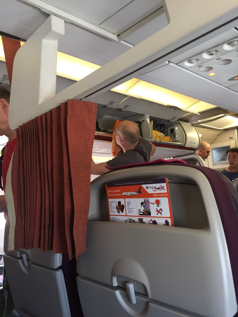 A short bus ride takes us from gate F2 to our Thai Smile aircraft. I have chosen seat 34A, the first row behind Smile class in a relatively empty plane.