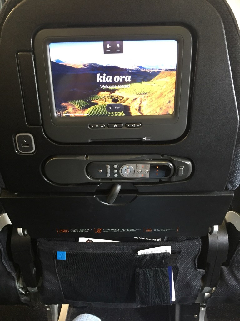 The seats are fully decked out with AV screens, device charges, and plenty of legroom (at least at the front). There is no charge for the movies and entertainment on ‘The Works’ ticket I have – I notice the seat next to me charges $10 to ‘upgrade to movies’. My ticket also includes a full meal. I finally get to watch Stephen King’s ‘It’. Glad it’s a small screen. That clown is freaky…