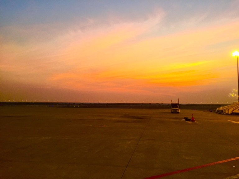 Nothing much else to add except we land on time and the sunset from the bus that takes me from the plane (annoying) to the terminal is nice.