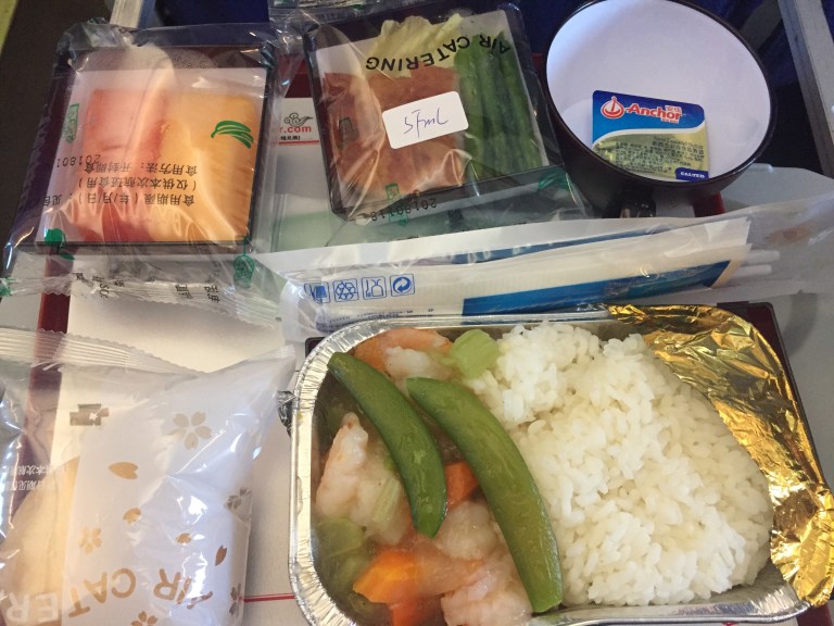I have again pre-ordered a seafood meal and the friendly flight attendant confirms this as I take my seat. The meal is not good. A gluey sauce and basically zero taste. I try a half glass of red wine. It’s Ok.