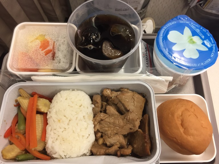 Lunch service shortly follows and today I choose the ‘Thai-style’ chicken. It’s very garlicky but not inedible. There is also fruit and Haagen-Daaz chocolate ice cream.