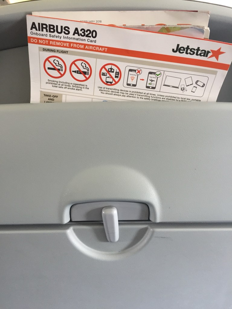 I am sitting in aisle seat 7D on this Jetstar Asia Airbus A320 bound for Singapore. The seats are predictably narrow, with a tight squeeze on the legs. The cabin is freezing, which is not going to be good for my flu.