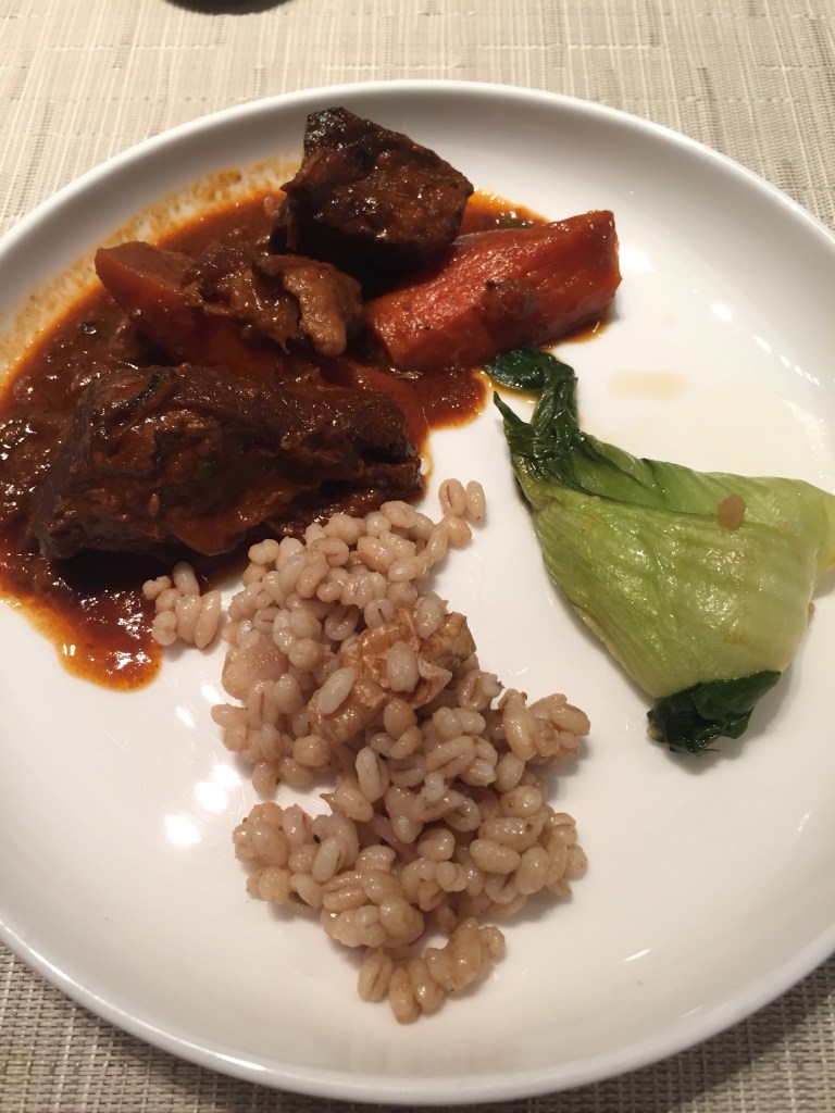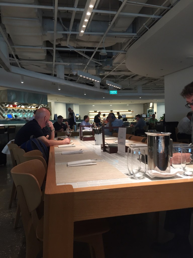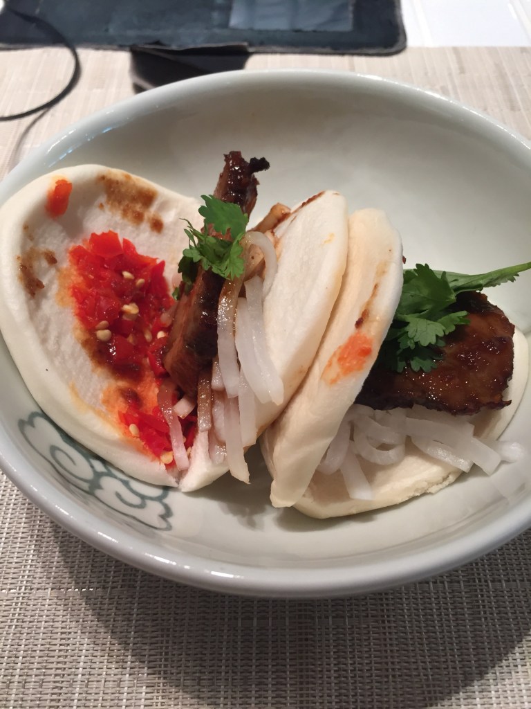 I get bored quickly so move to the dining area and try the Korean beef dish and a barley salad. It’s ok – beef is a bit hard. The All day menu today has a Chicken Laksa and Char Siu Pork Bun. I try the latter with a glass of red. It’s not bad. Then dessert. I need to remind myself I will be eating on board as well in a couple of hours….