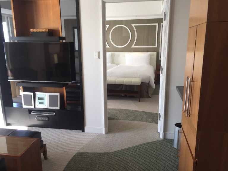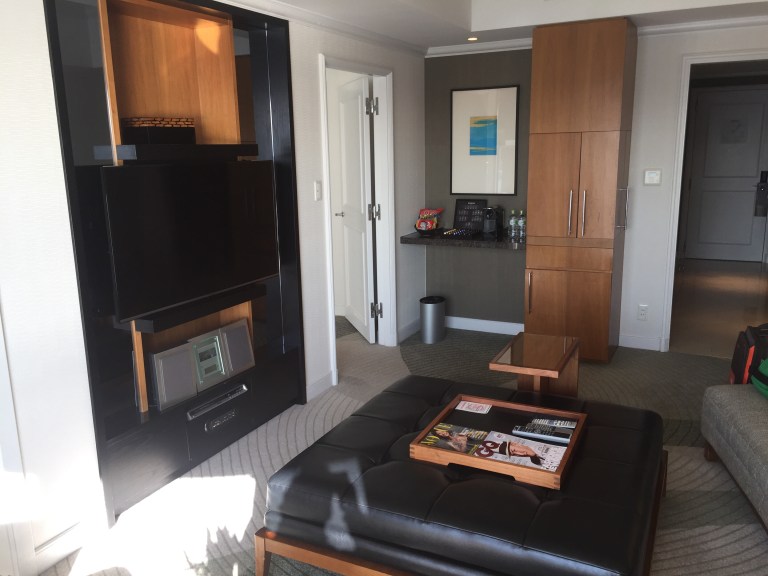 Soon after I go back to the lounge to collect the key card to my room. And it is huge – loungeroom, bedroom, guest and ensuite bathrooms, bose stereo, Nespresso machine, 2 balconies. The list goes on.