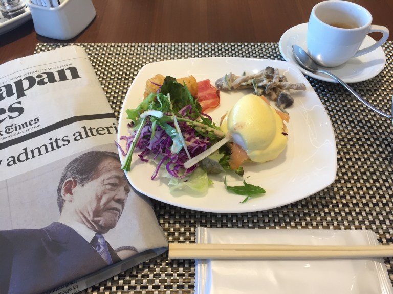 I arrive quite early at about 11am and make my way to the Executive Lounge to check-in. Although my original room is ready (a standard twin using 13,000 yen + 25000 Hhonors points), I am told that if I wait a few hours I will be upgraded to a Twin One-Bedroom Suite on the top floor with sweeping bay and bridge views. I accept!
