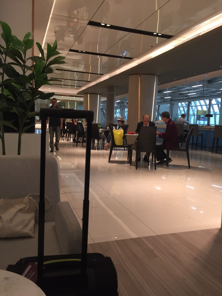 I have a good hour before boarding so take my time enjoying a multi course menu including salad, Asian chicken, seafood and rice; made-to-order wonton noodle soup, cakes and fruit. And of course the obligatory rose sparkling (or two) followed by a coffee.