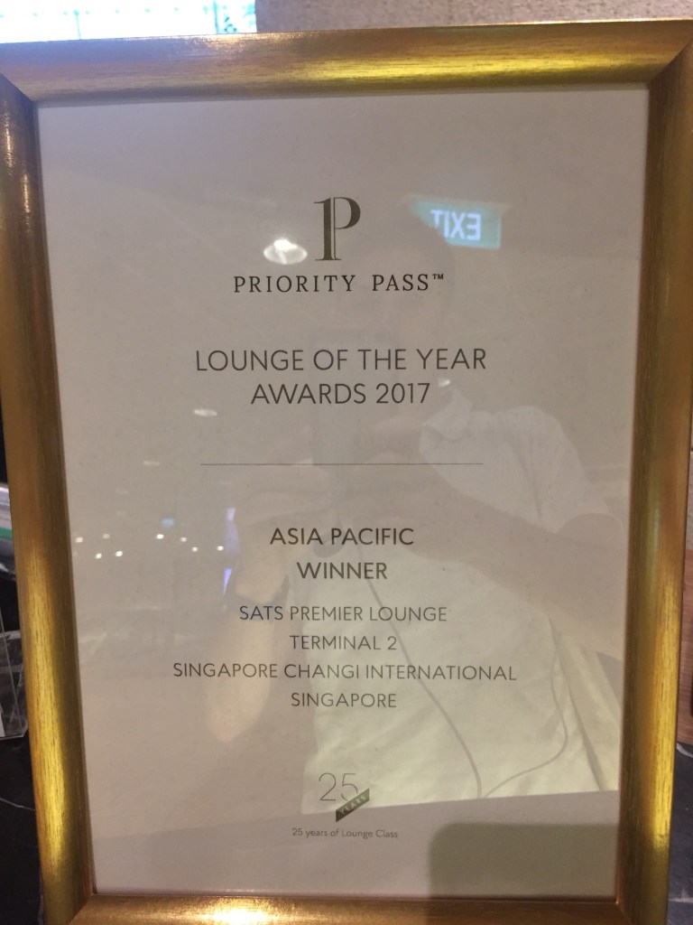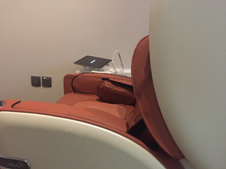 As I check-in, I notice the award it received last year for best lounge at Changi. It is indeed a spacious, well maintained lounge with dedicated personal Samsung tablet areas, Osim massage chairs, and VIP areas, but the food is not on par with other lounges at this airport.