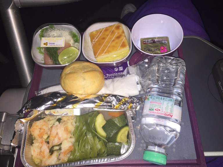 I have pre-ordered a Seafood meal (I forgot) and it is the old favourite – seafood pasta, smoked salmon salad, and a cake-dessert. Not bad but way too full to eat it all.
