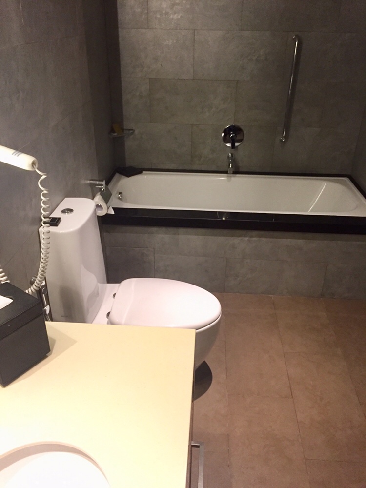 Check-in was a bit hard to find – what I thought was the concierge desk was actually the check-in counter and upon receiving the room card key and being thanked for being loyal Hhonors Diamond members we are told we have been upgraded to a one-bedroom Suite. Nice.