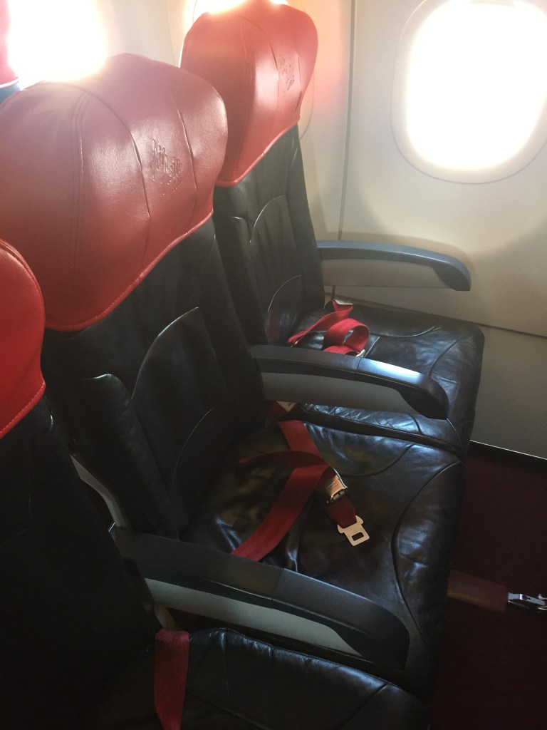 I am sitting somewhat squashed in forward row seat 3A on this AirAsia Airbus A320-200 flight back for a short transit in Bangkok before re-boarding another AirAsia flight to Yangon.