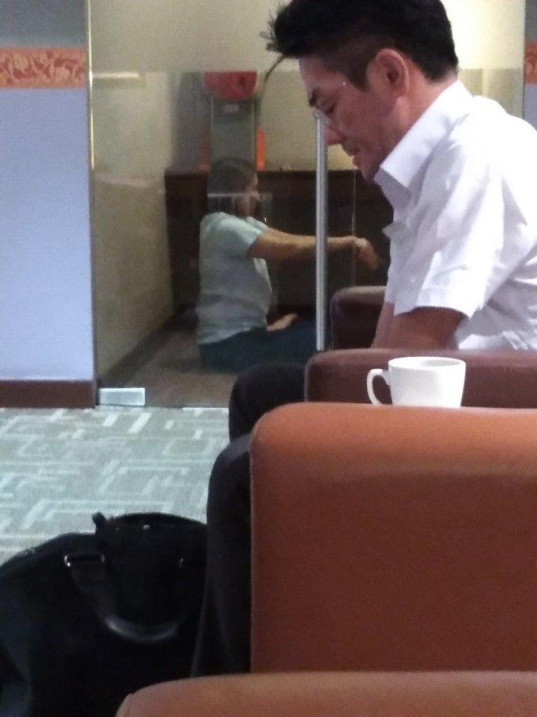 What to do for the next 1.5 hours. Hmmm, luckily I brought my iPad loaded with Korean dramas to catch up on. Or maybe a spot of yoga like this lady: