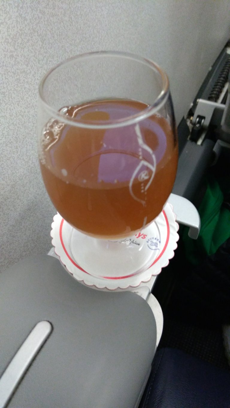 We stop at Burundi for a 45 min refuel before taking off again. During this time we stay on board, and after the new passengers board, Business Class passengers are again offered drinks and this time it is Champagne for me.