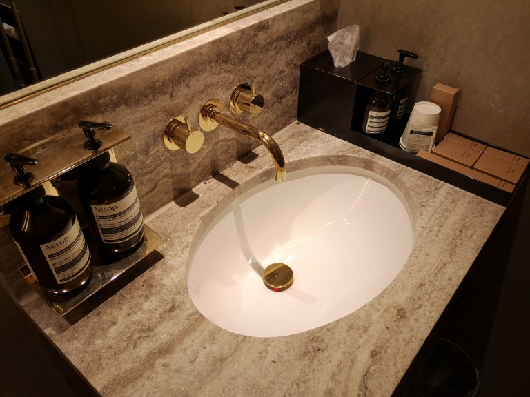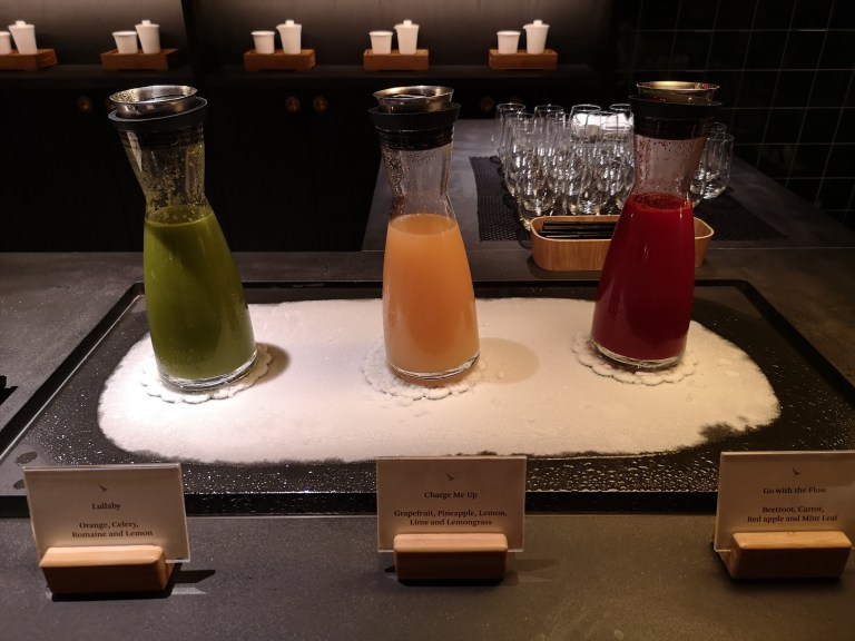 After doing a bit of work in my ‘business class’ single-sofa, I grab a quick freshly squeezed mixed juice in the tearoom, before heading for a shower which comes with Aesop amenities. Such a luxurious experience.