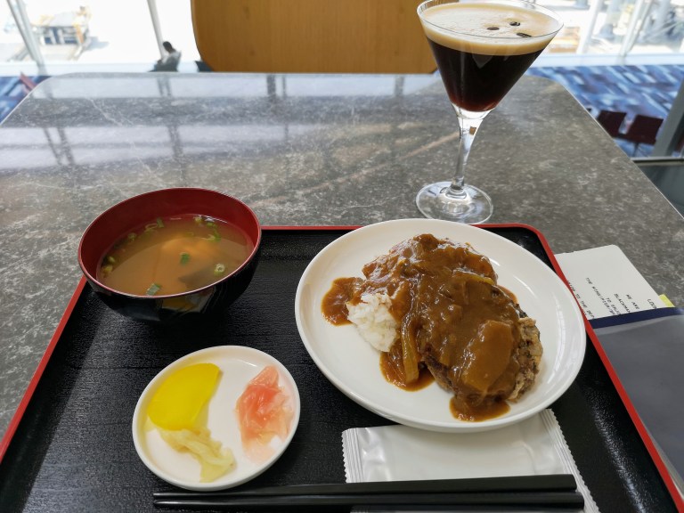 My signature favourite, an Espresso Martini is ordered first, and then I head over to the buffet section where I help myself to a Japanese lunch of ‘Hamburger Curry Rice’ with Japanese condiments and Miso soup.