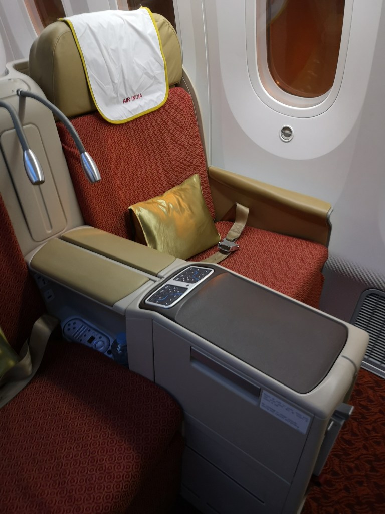 I am sitting in Business Class seat 1A on this Air India Dreamliner Boeing 787-8 aircraft bound for Mumbai.