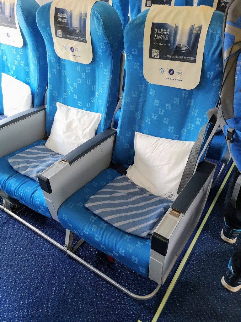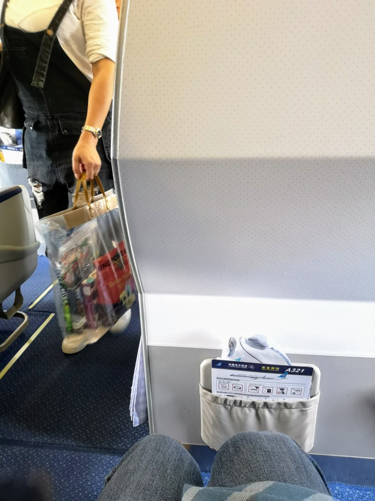 I am sitting in seat 31H, an aisle seat, in the first row of Economy on this China Southern Airlines Airbus A321 aircraft bound for Shenzhen.