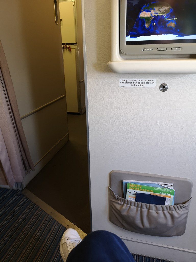 I am sitting in seat 31H, an aisle seat on this Singapore Airlines A330-300 flight bound for Singapore. It has plenty of legroom for me being a bulkhead seat in the first row of the economy cabin.