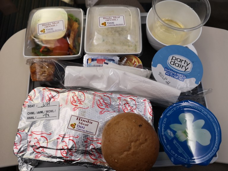 I have pre-ordered a Hindu Meal and it consists of a fish entrée, fish main, and a tasty creamy-rice dessert. It is delicious.