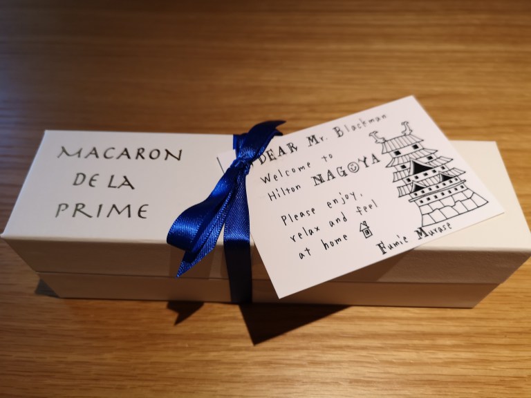 I have been upgraded to a phenomenonal Japanese Suite – room 1111, which is essentially like staying in a Japanese Ryokan. Tatami mats, traditional low table and seats, Japanese-style bathroom and separate toilet, and a beautiful welcome gift brought to me personally by the lovely Guest Services manager. Here at Hilton Nagoya they really know how to make you feel special.