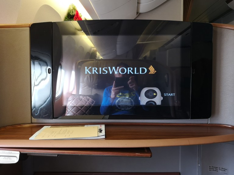 The seat is huge (and I thought SQ’s Business Class seats were insanely big) – practically an oversized sofa. And the screen is as big as one you might find in the living room of a small apartment.