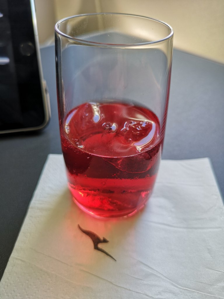 Service starts with a pre-drink service and I choose the Maggie Beer Ruby Red. Shortly after take-off drink service continues and I request a red and then a sparkling. Lunch orders are also taken.