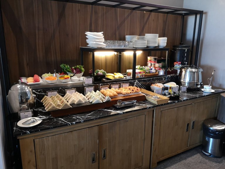 It is a tiny lounge, but has everything required. Warm service, a nice selection of cold breakfast items on the buffet, and strong WiFi.