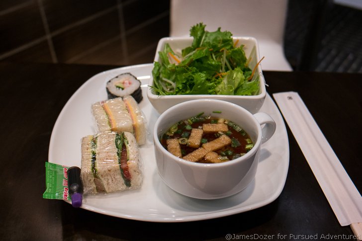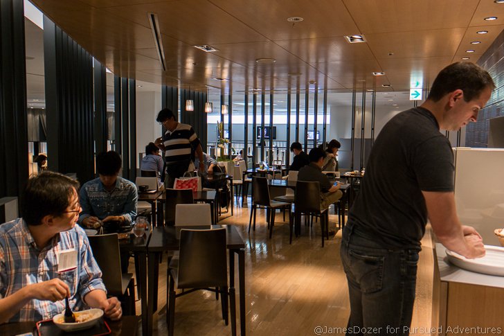 Crowded, messy lounge above gate 57 at Narita’s Terminal 1. I walk in and am hit by crowds of travellers queuing up for a few pieces of sushi, jugs of beers, made-to-order noodles and curry, and glasses of Sake.