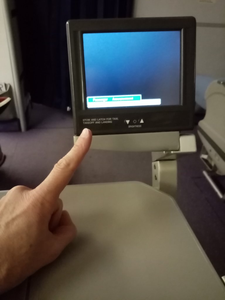 I have a tiny AV screen which has to be stowed for take off and landing, and watch some new forgettable RomCom film that I have chosen badly.