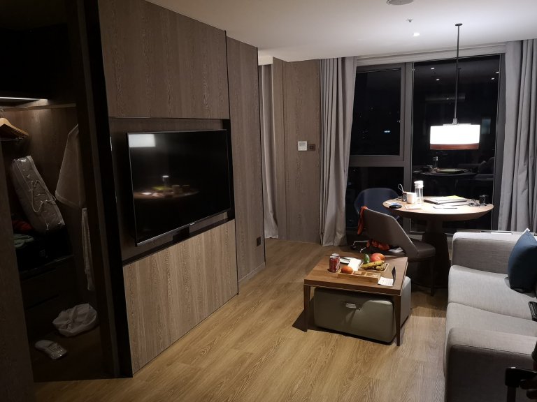 Lovely hotel in the downtown Zhongshan district of Taipei. As HHonors Diamond members we have been upgraded to a large King Corner Suite, and presented with a lovely fruit basket welcome amenity from the management.