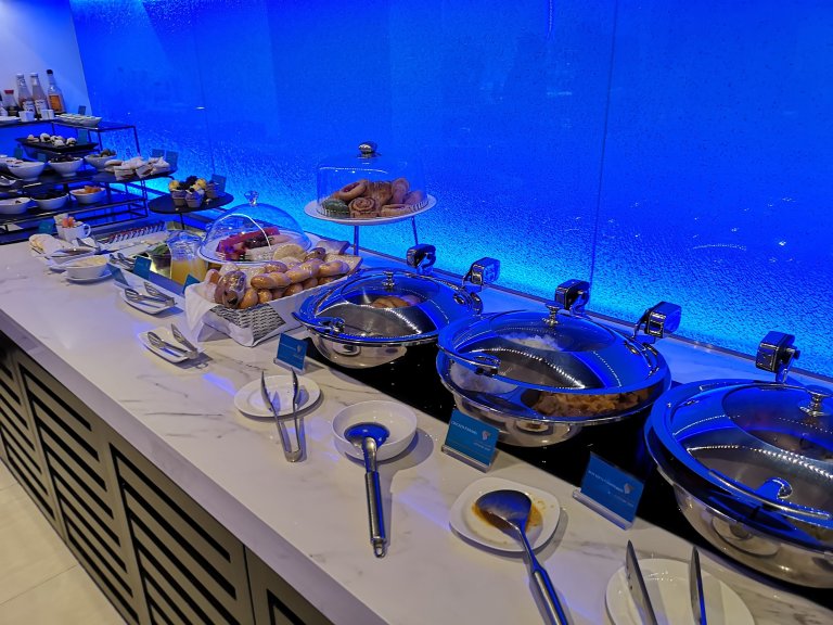 I enter this lounge using my Priority Pass unlimited access membership and, after putting my bags down, make an unnecessary dash to the buffet. I am starving and the Middle Eastern food choices are magnetically drawing me towards them.