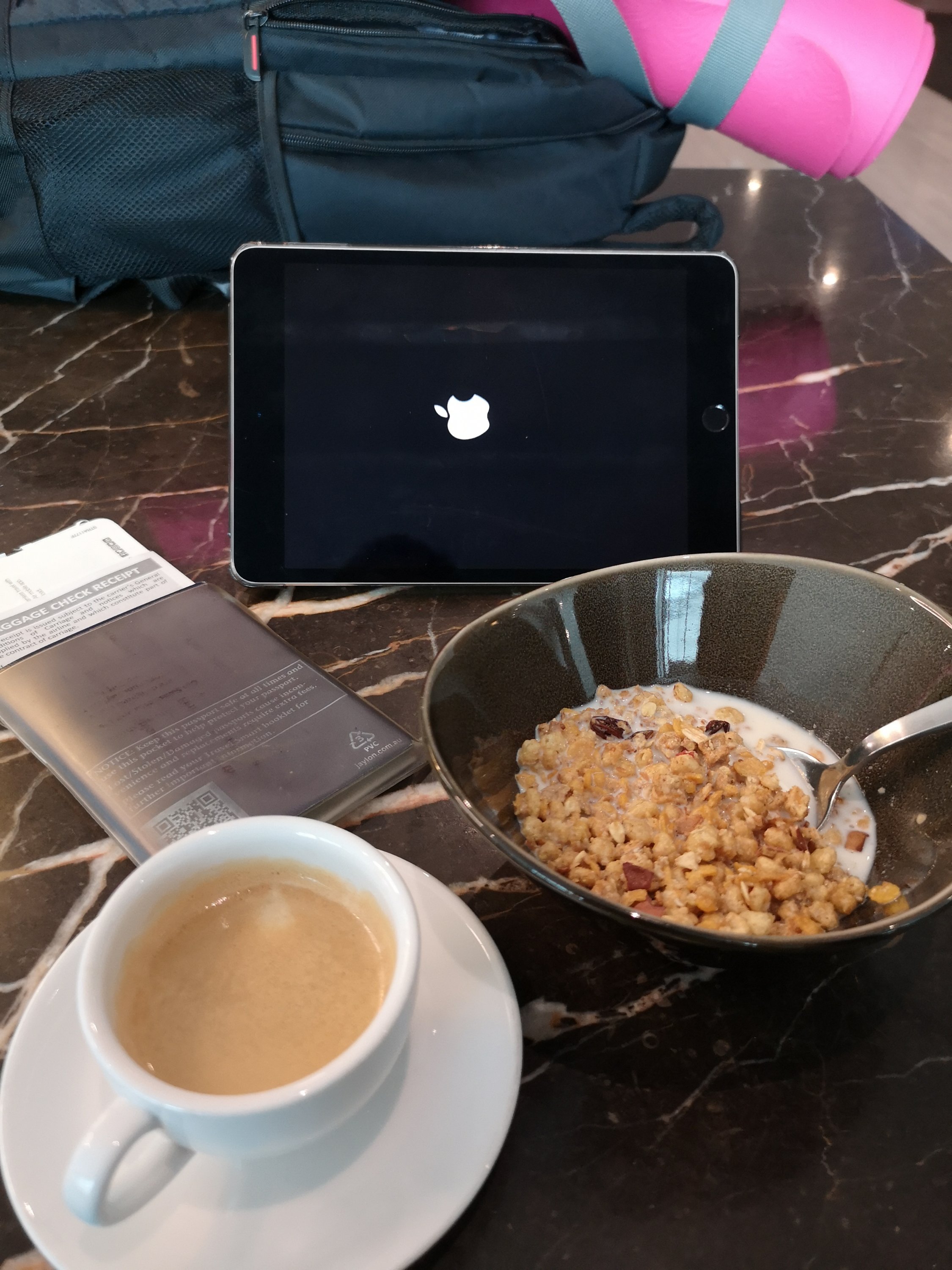 My Priority Pass gives me access to this lounge and I guess because it is a weird time between breakfast and lunch, there is not too much in terms of the food offerings, so decide on a bowl of low-fat Granola and an Espresso (I later try the chicken Korma and a glass of white when lunch finally is served).