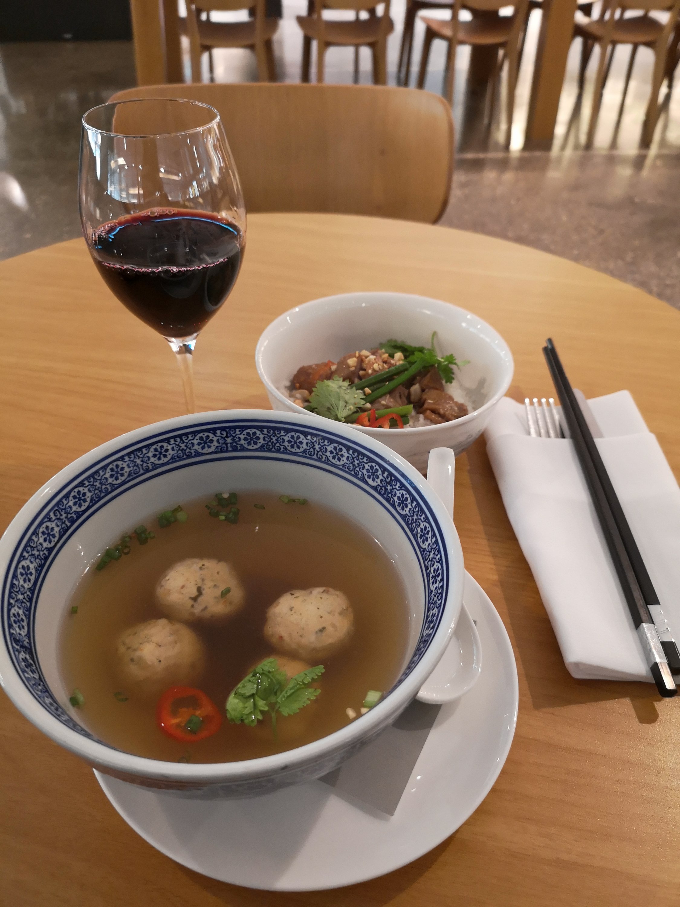 The made-to-order food is not too good today. The soup is sour and the meat is tough. It is well presented though.