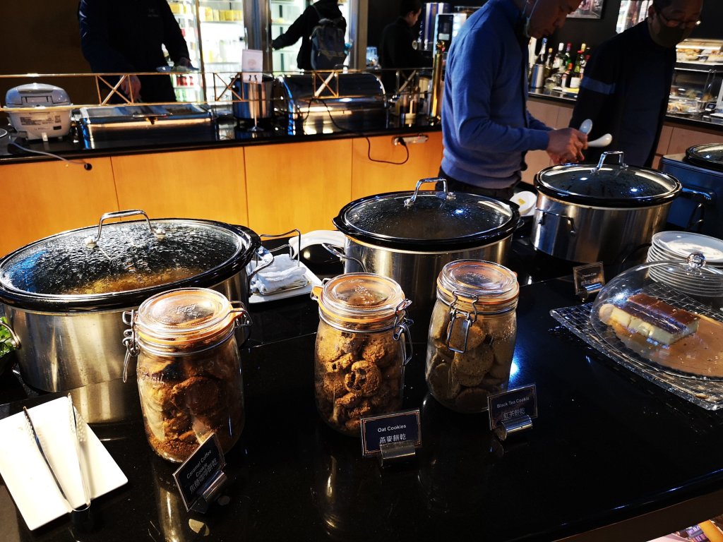 But today I am flying SQ with my partner who is Krisflyer Gold, and therefore we can access this lounge together. I have been here before, but usually I head straight for the buffet with loads of delicious Taiwanese and Singaporean delights but today I just dont ‘feel it’, so instead choose a small piece of cheesecake, peacan pie tartlet, and a Baileys on ice.