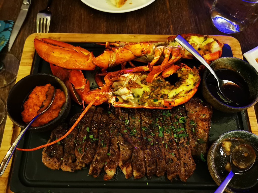 The meal at the Opus Grill on the first night was excellent, and we were attended to by an amazing team member, Peggy, who was an absolute standout. We had a huge Wagyu steak with half grilled lobster and delicious Onion bread to share (it was more than enough), and copious amounts of red, white, and sparkling to drown it all down. We didn’t need to, but ordered dessert, and then Peggy brought an additional one which she originally had recommended and we declined, but gladly wolfed that down as well.