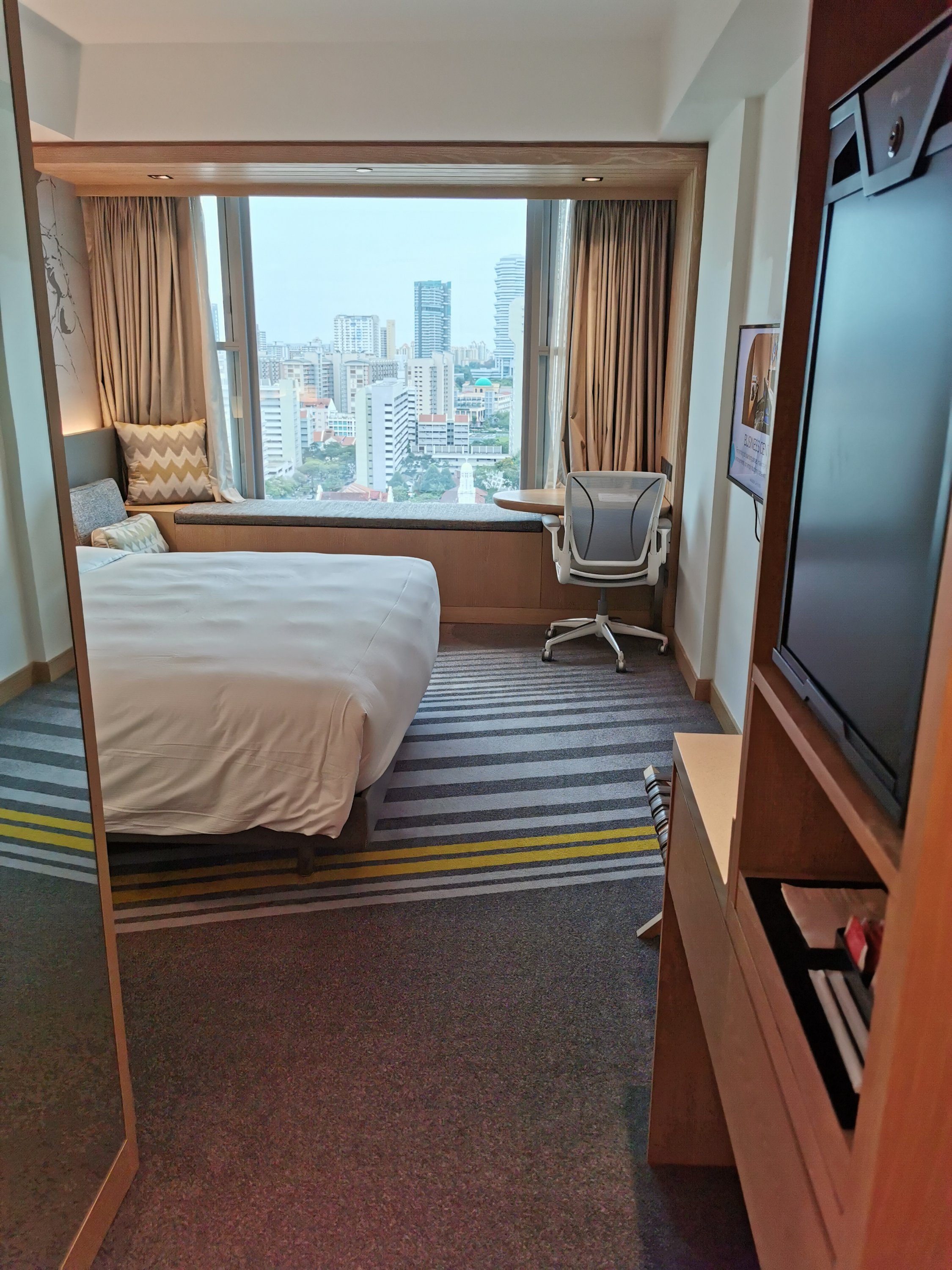 We are upgraded to a Deluxe King room on the 15th floor. It has a wonderful view of Little India and surrounds, but no terrace to step outside like the upgrade we usually get.