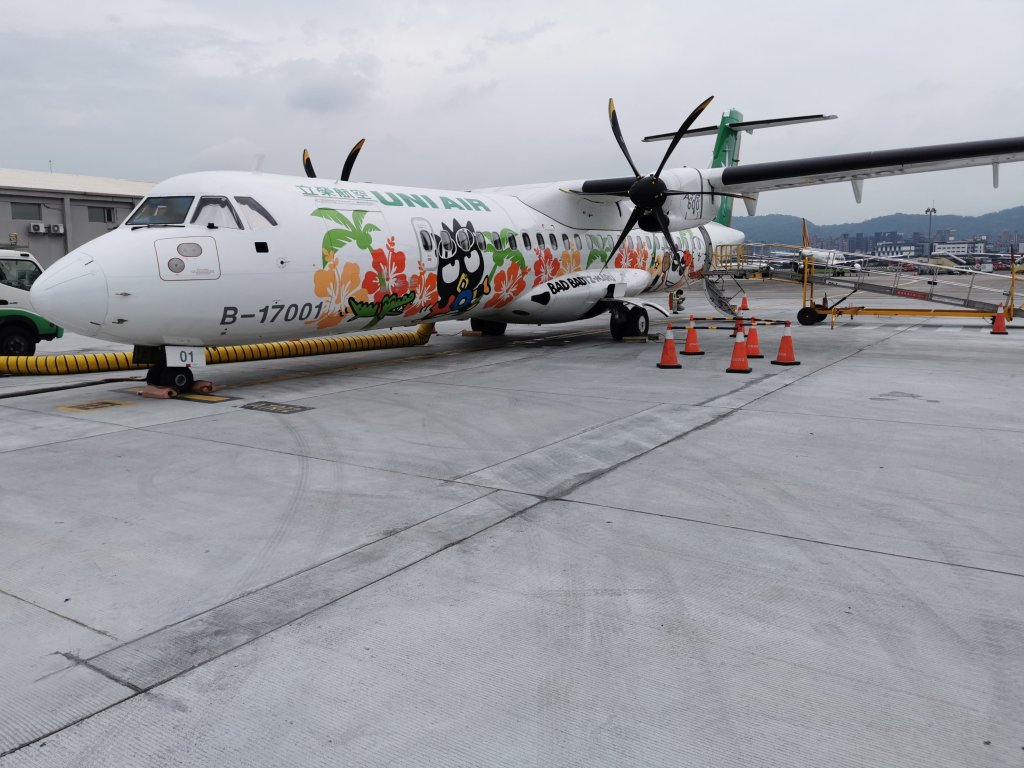 I am sitting in window seat 9A on this Uni Air (a subsidiary of Taiwan’s Eva Air) ATR73 aircraft bound for Taidong. This is a designated ‘animated’ flight featuring ‘Bad Badtz-Maru’ – a Japanese Anime character.