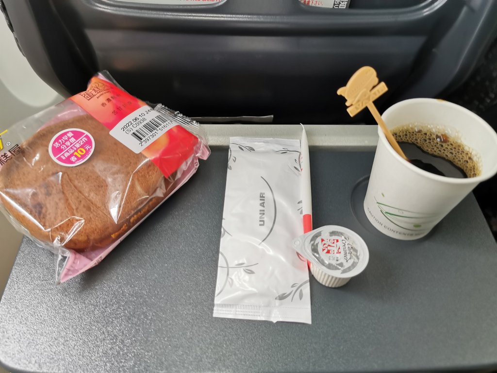 The flight is only 50 mins, with a lot of turbulence, and about 15 minutes before landing drinks are briskly served through the cabin. I request a coffee and have it with a chocolate cake I purchased at Songshan Domestic airport prior to boarding.