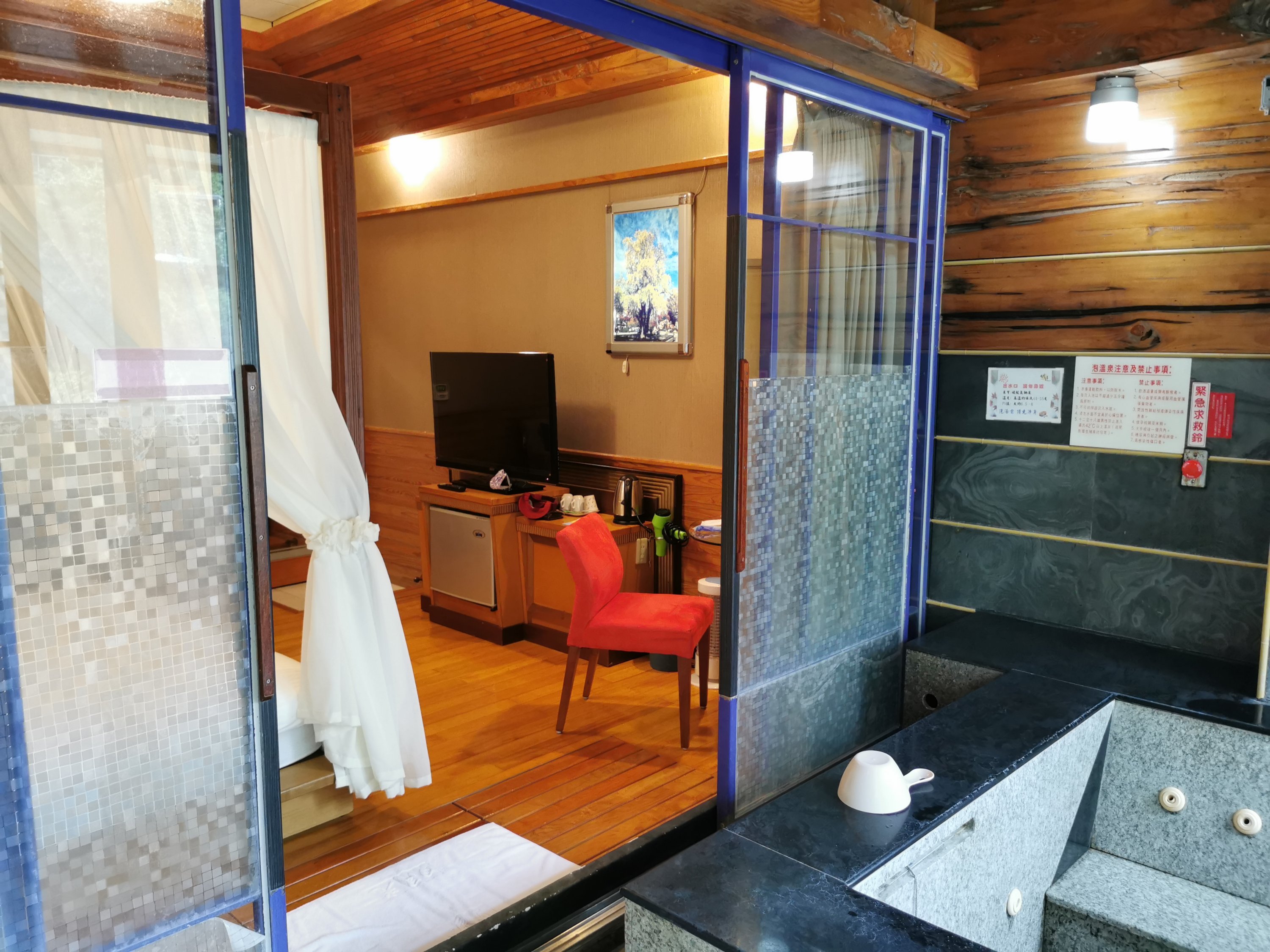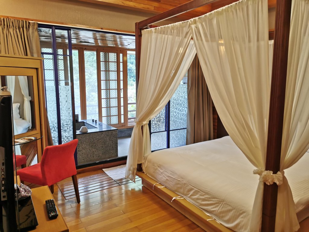 I found this beautiful little boutique hotel on klook.com which offered rooms overlooking the lake, a hot spring bath in the room, hot spring entry, and dinner and breakfast for around TWD 3000 (SGD150) for 2.