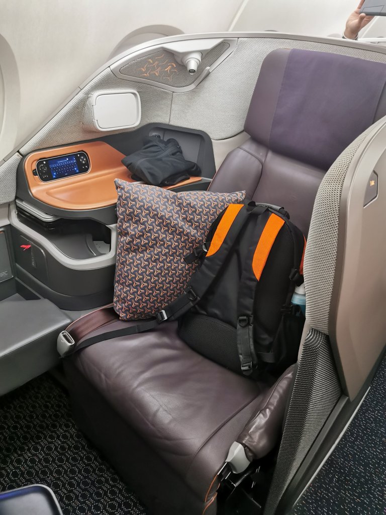 I am sitting in Business Class seat 14K on this Airbus A380-800 Singapore Airlines flight bound for Sydney.
