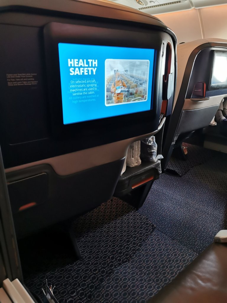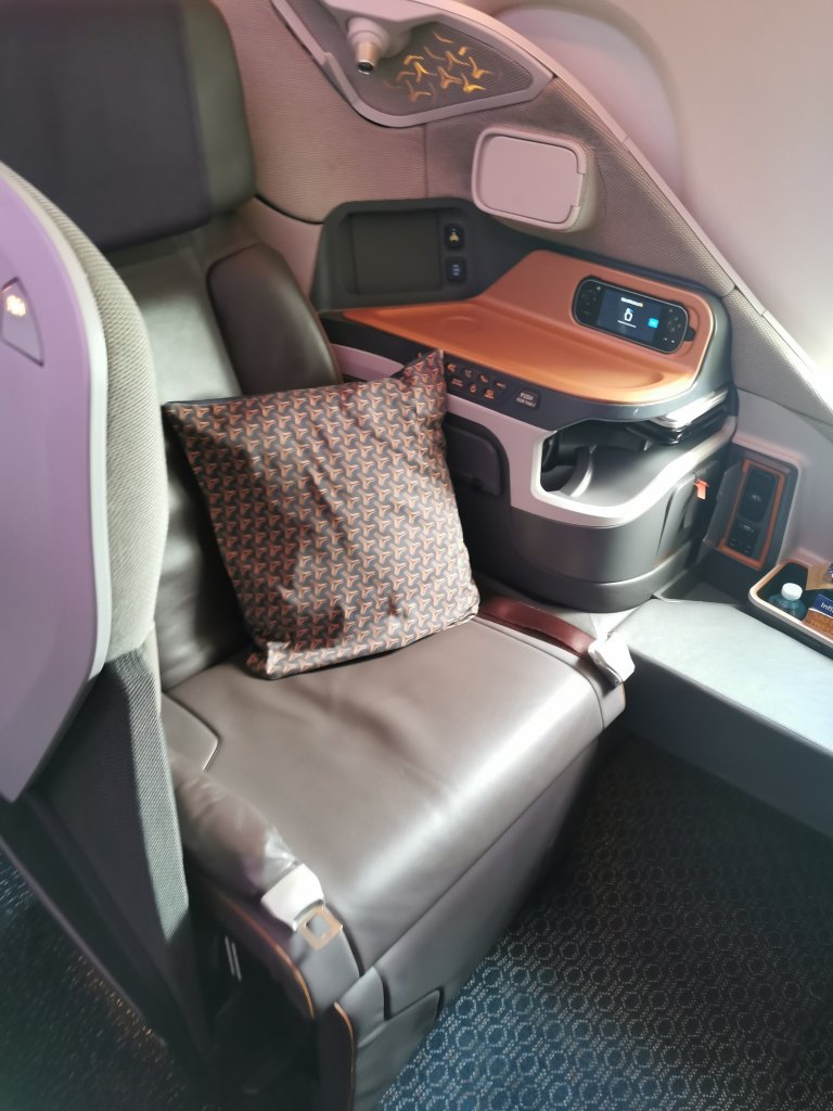 I am sitting in the back section of the upper deck on this Singapore Airlines Airbus A380-800 aircraft bound for Singapore in Business Class seat 96A.