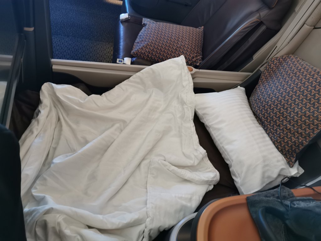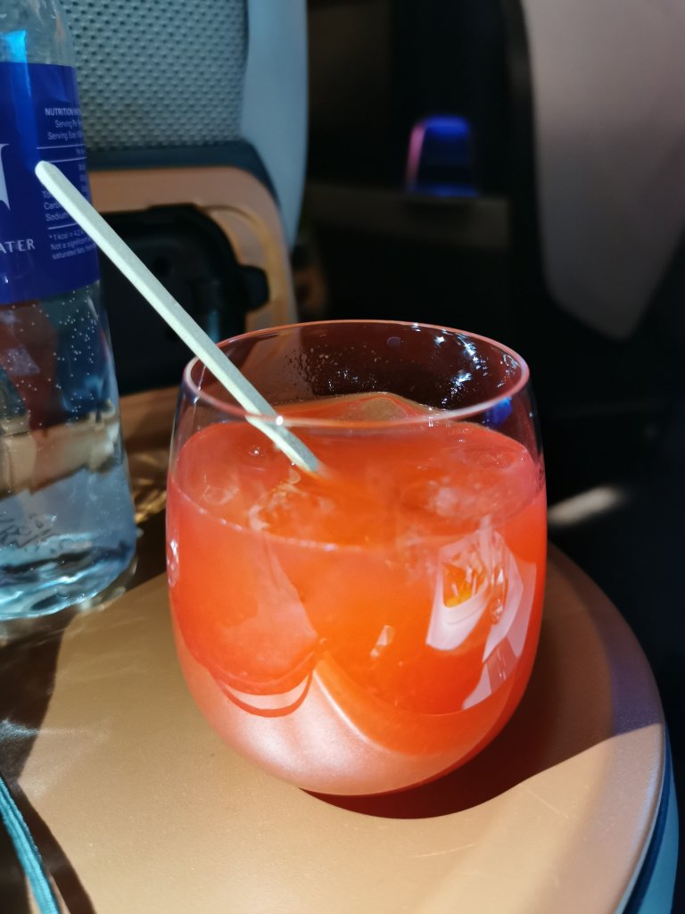 During dinner I watch the new Elvis movie and it is brilliant. A quick nap in full-bed follows, and then my second movie (the new Jurassic Park) and meal service – a seafood and rice dish with another cocktail, the signature Singapore Sling.