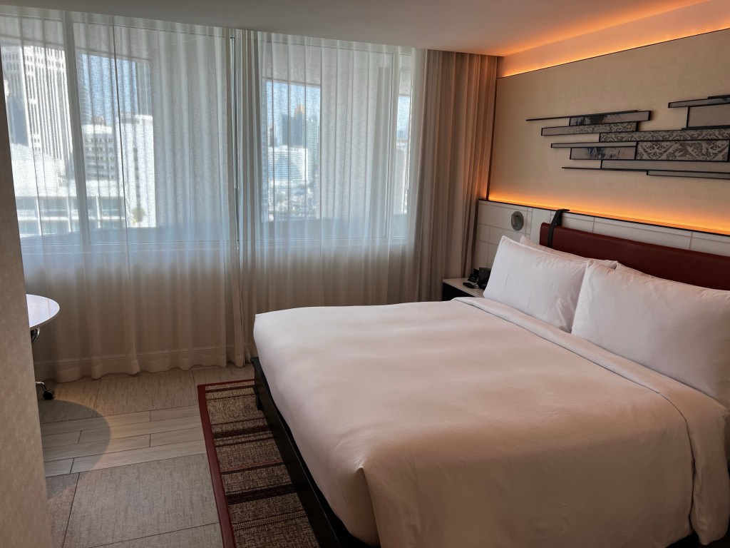 Everything from pre-arrival communication, to check-in, staff at the restaurant and front desk, even housekeeping is really top notch. Upon check-in we are upgraded to a Premium King corner room on the 24th of 25 floors, which is quite spacious with a separate bath and shower, comfy King bed, and plenty of wardrobe space.