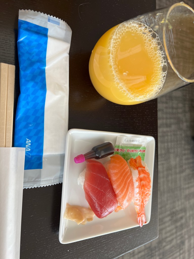 The food options aren’t as extravagant as I thought they might be, but the sushi plate (all that I take) and made to order from a genuine sushi chef is pretty good.
