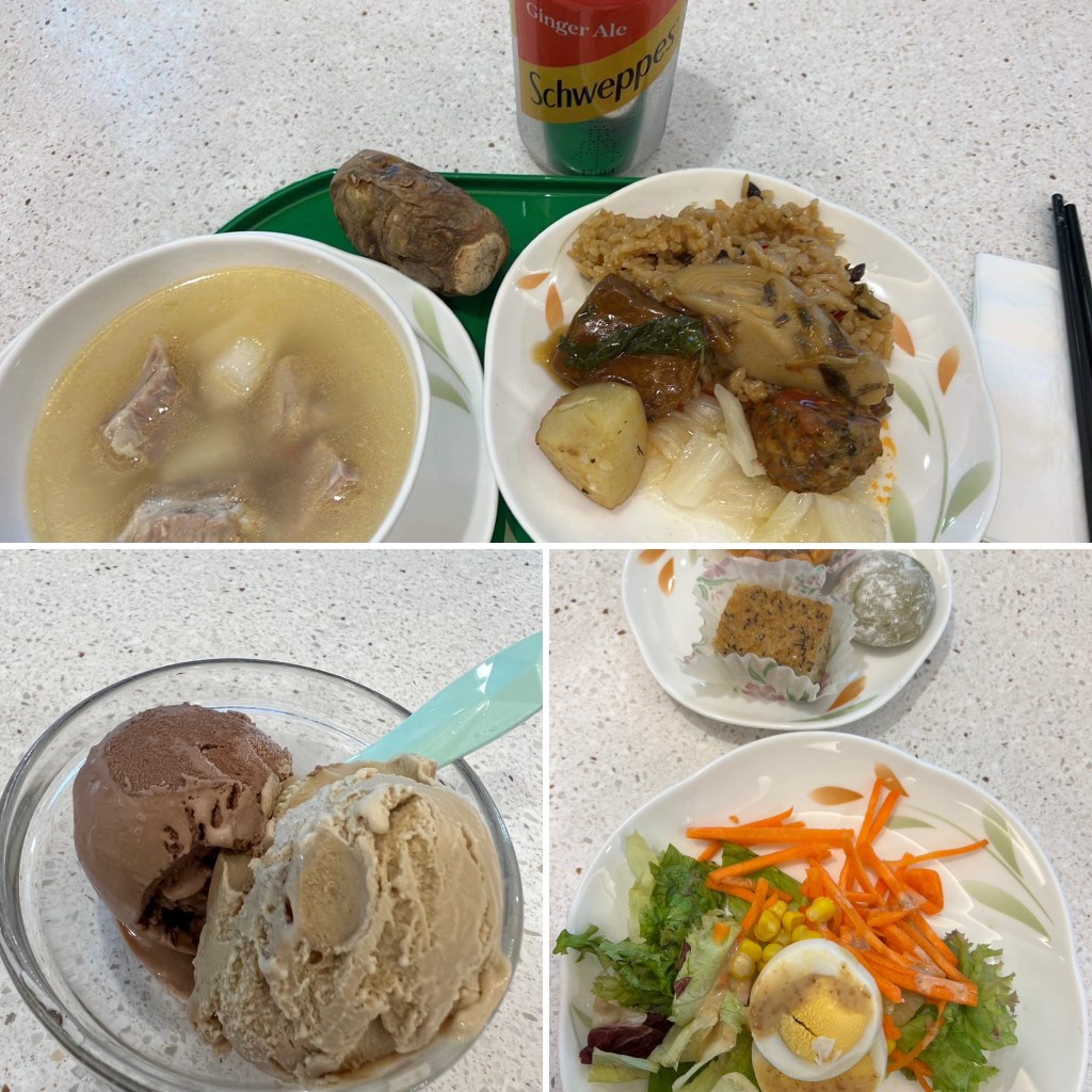 The winner is the double boiled rib soup with radish – very rich and flavorful. The ice cream and petite cakes are a nice end.