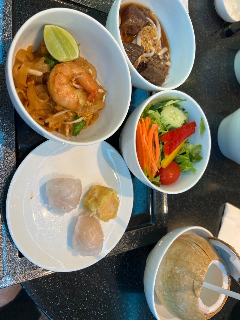 I would have to say this is one of the best lounges at the airport. The ambiance is pretty cool with glass, lights, and mirrors, and the food is brilliant – think Pad Thai, Beef noodle soup, Mango sticky rice, Magnum ice-cream! I go a bit nuts and eat quite a bit 😅.